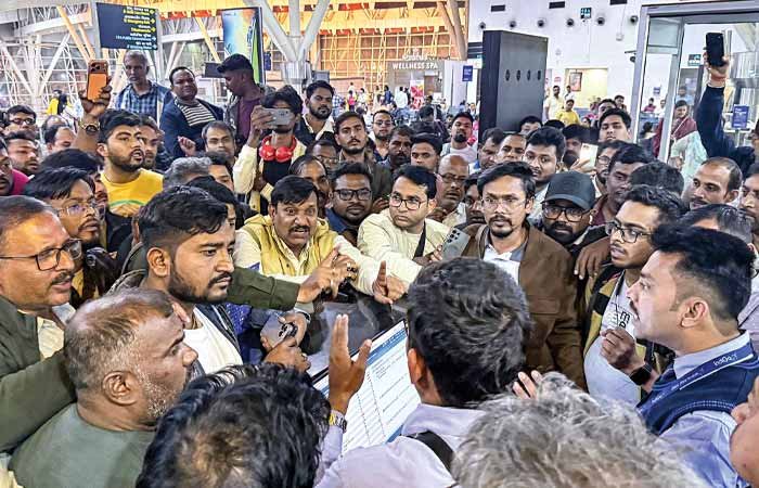 પાઇલટ્સ અને ક્રૂ મેમ્બર્સની અછતના કારણે દેશની સૌથી મોટી એરલાઇનની કટોકટી ત્રીજા દિવસે પણ ગંભીર બની છે. અમદાવાદ, વડોદરા, સુરત અને રાજકોટ એરપોર્ટ પર 106 ફ્લાઇટ રદ કરવામાં આવી છે. જેને કારણે પેસેન્જર્સમાં ભારે રોષ જોવા મળી રહ્યો છે અને અફરા તફરી મચી ગઈ છે. તેમાં પણ અમદાવાદ એરપોર્ટ પર ઇન્ડિગો ચોર હૈ, ઇન્ડિગો મુર્દાબાદના નારા લાગ્યા હતા. ઇન્ડિગો ઇમર્જન્સીને કારણે કોઈએ હનીમૂનના પ્લાન પડતા મૂકવા પડ્યા છે તો કોઈ વર-વધૂ પોતાના જ લગ્નના રિસેપ્શનમાં પહોંચી શક્યા નથી. એક તરફ ઈન્ડિગોની ફ્લાઈટ્સ ધડાધડ રદ થઈ રહી છે, તેવામાં એર ઇન્ડિયાના ભાડામાં ચાર ગણો વધારો થયો છે. મજબુરીમાં હવે મુસાફરોનેે બસ-ટ્રેનમાં મુસાફરી કરવી પડશે. વડોદરાથી મુંબઈ, દિલ્હી, પુણે અને ગોવા જતી ઈન્ડિગોની નવ ફ્લાઈટ રદ કરવામાં આવી છે. ગઈકાલે પણ 2 ફ્લાઇટ રદ કરાઈ હતી અને 2 ફ્લાઇટ મોડી પડી હતી. ફ્લાઇટ રદ થતાં મુસાફરો અટવાઈ ગયા છે. બીજી તરફ વડોદરા એરપોર્ટ પર ફસાયેલા મુસાફરોને સુવિધા આપવા માટે એર ઇન્ડિયા આજે અને કાલે દિલ્હી-વડોદરા-દિલ્હી સેક્ટર પર વધારાની બે ફ્લાઇટ્સનું સંચાલન કરી રહી છે. વડોદરા એરપોર્ટ પર પહોંચેલા મુસાફરે આક્રોશ સાથે જણાવ્યું હતું કે, કંપનીએ હાથ ઊંચા કરી દીધા છે. કંપનીની પોલિસી ફક્ત પ્રોફિટ છે, પેસેન્જર તમારા માટે કોઈ મહત્વના નથી. તમારે જ પ્રોફિટ કમાવો છે, પેસેન્જર બિચારા ઝાડ ઉપરથી તોડીને પૈસા લાવે છે. અમદાવાદ એરપોર્ટ પર વહેલી સવારથી ભારે ભીડ જોવા મળી રહી છે. લોકોની ફ્લાઈટ ડીલે અથવા કેન્સલ થતા લોકો પણ પરેશાન થઈ રહ્યા છે. રોષે ભરાયેલા મુસાફરોએ ઇન્ડિગો ચોર હૈ અને ઇન્ડિગો મુર્દાબાદના નારા લગાવ્યા હતા. આજની ફ્લાઇટ હતી તેવા ઘણાં લોકોને આવતીકાલ માટે રિ-શિડ્યુલ કરીને ટિકિટ આપવામાં આવી રહી છે. કોઈ પોતાની મિટિંગ પોસ્ટપોન્ડ કરી રહ્યું છે, તો કોઈનું ઇન્ટરવ્યુ કેન્સલ થઈ રહ્યું છે. અહીં એવા પણ મુસાફર છે જે પોતાના લગ્નના રિસેપ્શનમાં પણ સમયસર પહોંચી શક્યાં નથી.