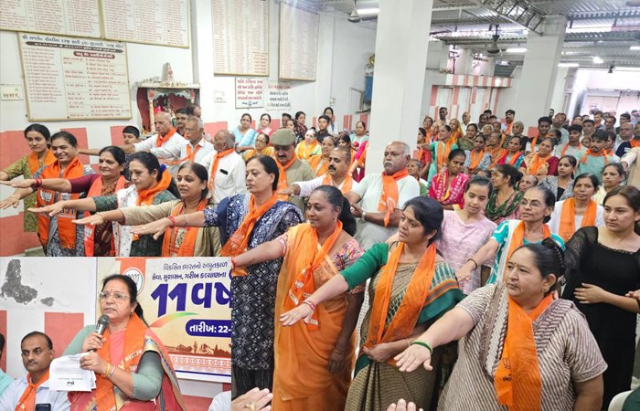 આ ઉજવણીના ભાગરૂપે રાજકોટ ખાતે ખાસ કાર્યક્રમનું આયોજન કરવામાં આવ્યું હતું જેમાં ભાજપના હોદ્દેદારો, કાર્યકર્તાઓ અને અગ્રણીઓ ઉપસ્થિત રહ્યા હતા. કાર્યકર્તાઓને માર્ગદર્શન આપતા રાજકોટના પૂર્વ મેયર અને જ્ઞાતિ આગેવાન રક્ષાબેન આર. બોળીયાએ જણાવ્યું કે, પંચામૃત તત્વો – સેવા, સુશાસન, આત્મનિર્ભરતા, ગરીબ કલ્યાણ અને રાષ્ટ્રપ્રેમ પર આધારિત વડાપ્રધાન મોદીનાં 11 વર્ષના કાર્યકાળે ભારતને વૈશ્વિક સ્તરે નવી ઓળખ આપી છે. તેમણે કાર્યકર્તાઓને આ અવસરે ‘ઘર ઘર વિકાસનું સંદેશ’ પહોંચાડવા અને વિવિધ યોજનાઓને સમાજના છેલ્લા માનવી સુધી પહોંચાડવાનો સંકલ્પ લેવાનો આહ્વાન કર્યું હતું.આ કાર્યક્રમમાં શહેરના અનેક વર્ધમાન કાર્યકર્તાઓ, મહિલાઓ અને યુવાનોમાં નવ ચેતનાનું સંચાર જોવા મળ્યો હતો.