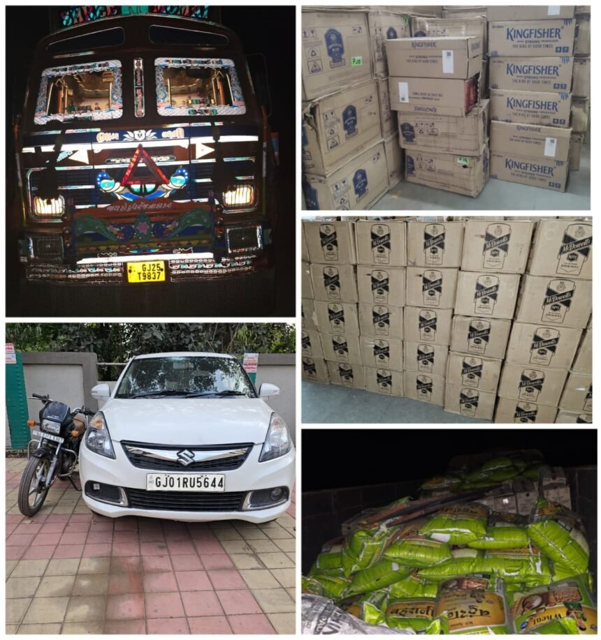 રાજકોટ ક્રાઇમ બ્રાન્ચ પીઆઇ એમ આર ગોંડલીયા અને ટીમ પેટ્રોલિંગમાં હતી તે દરમિયાન પીએસઆઈ ધવલ સાકરીયાને ચોક્કસ બાતમી મળી હતી કે લીલી સાજડીયાળીની આલાસર ગામના સિમ વિસ્તારમાં ઘઉંના જથ્થાની આડમાં દારૂ બીયરનાં જથ્થાનું કટિંગ થઇ રહ્યું છે આ ચોક્કસ બાતમી મળતા સ્થળ પર રેડ કરતા ગેરકાયદે દારૂ બિયરનો મોટો જથ્થો મળી આવ્યો હતો. પોલીસે રેડ કરતા સ્થળ પરથી જુદી જુદી બ્રાન્ડનો 4068 બોટલ દારૂ અને 240 બીયરના ટીન મળી આવતા કુલ 14.14 લાખનો દારૂ બિયરનો જથ્થો તેમજ 12.25 લાખ કિંમતના 3 વાહનો તેમજ 1.41 લાખ કિંમતના 90 બાચકા ઘઉંના મળી કુલ 27.97 લાખનો મુદામાલ કબ્જે કરી આ જ ગામના પરષોત્તમ પરબતભાઇ મકવાણા અને પ્રકાશ દયાભાઈ રાઠોડની ધરપકડ કરી હતી પ્રાથમિક પૂછતાછમાં આ દારૂનો જથ્થો મંગાવનાર તરીકે લાખા સંગ્રામ ઘીયડનું નામ ખૂલતાં તે સૂત્રધાર સહિત 5 શખસોની શોધખોળ હાથ ધરી છે.