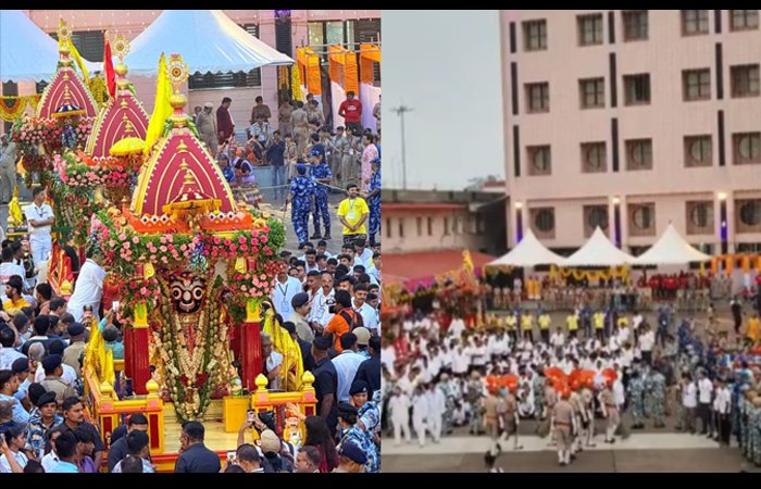આજે (27 જૂન) અમદાવાદમાં ભગવાન જગન્નાથજીની 148મી ભવ્ય રથયાત્રાનું ઈખએ પહિંદવિધિ કરી પ્રસ્થાન કરાવ્યું. સાથે જ પ્રથમવાર ભગવાનને ગાર્ડ ઓફ ઓનર પણ અપાયું હતું. રથયાત્રાને લઇને આજે સવારના 4 વાગ્યાથી ભક્તોની ભીડ જોવા મળી રહી છે. મંગળા આરતી સાથે આજના રથયાત્રાના દિવસનો પ્રારંભ કરવામાં આવ્યો છે. કેન્દ્રીય ગૃહમંત્રી અમિત શાહે પરિવાર સાથે જમાલપુર જગન્નાથ મંદિરે પહોંચી ભગવાનની મંગળા આરતી કરી હતી. આ સાથે મંદિર ખાતે હાજર સાધુ-સંતોના આશીર્વાદ લીધા હતા.