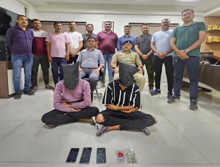 રાજકોટ બી ડિવિઝન પીઆઇ એસ એમ જાડેજા અને એલસીબી પીએસઆઈ એચ આર ઝાલા અને તેમની ટીમ પેટ્રોલિંગમાં હતી દરમિયાન સ્ટાફને મળેલી બાતમી આધારે કુવાડવા રોડ જૂન જકાતનાકા પાસે વોચ ગોઠવી જામનગરના ગુલાબનાગરના શાહરુખ બસીરભાઈ જામ અને રાહુલ દિપકભાઈ ગોસાઈ નામના બે શંકાસ્પદ શખસોને અટકાવી બંનેની તલાશી લેતા પર્સમાંથી 7.50 ગ્રામ મેફેડ્રોન ડ્રગ્સનો જથ્થો મળી આવ્યો હતો જેને પગલે પોલીસ દ્વારા બંને આરોપીઓને ઝડપી લઈ તેની પાસેથી 7.50 ગ્રામ મેફેડ્રોન ડ્રગ્સ, 3 મોબાઈલ ફોન અને રૂ. 6,100ની રોકડ સહિત કુલ રૂ. 1,01,100નો મુદ્દામાલ કબ્જે કર્યો હતો.