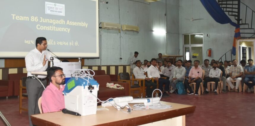 જૂનાગઢ લોકસભા ચૂંટણી અંતર્ગત 86 જૂનાગઢ વિધાનસભા મતવિસ્તાર અન્વયે 547 પ્રિસાઇડિંગ ઓફિસર અને 654 પોલિંગ ઓફિસર – 1ની પ્રથમ તાલીમનું આયોજન કૃષિ યુનિવર્સિટીના ઓડિટોરિયમ હોલ ખાતે કરવામાં આવ્યું હતું. જૂનાગઢ જિલ્લામાં આગામી તા.7 મેના રોજ લોકસભા ચૂંટણી યોજાનાર છે. લોકસભા સામાન્ય ચૂંટણી સંદર્ભે થનાર મતદાનની કામગીરી સુવ્યવસ્થિત રીતે થાય એ માટે જિલ્લા ચૂંટણી અધિકારી અને કલેક્ટર અનિલકુમાર રાણાવસિયાના માર્ગદર્શન હેઠળ કૃષિ યુનિવર્સિટી ખાતે ચૂંટણીલક્ષી વિવિધ કામગીરી સાથે જોડાયેલા અધિકારીઓ-કર્મચારીઓની પ્રથમ તાલીમ આપવામાં આવી હતી તથા ચૂંટણીની સમગ્ર કામગીરી દ્વારા દરમિયાન ચીવટતાપૂર્વક કામગીરી કરવા, ઈવીએમ હેન્ડસ ઈન તાલીમ લેવા જણાવ્યું હતુ.