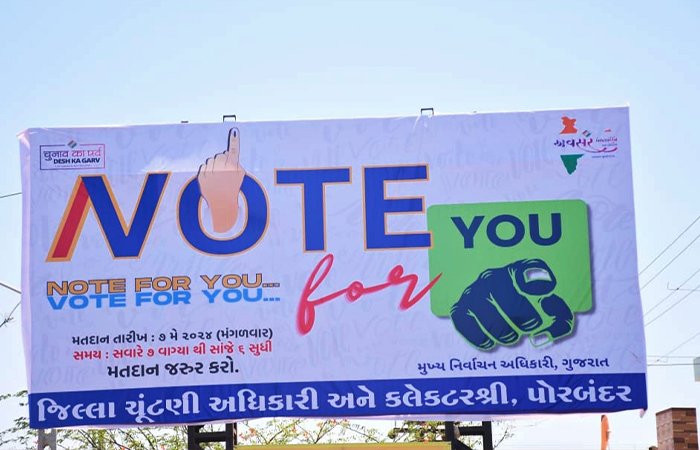 પોરબંદરનો દરેક નાગરિક લોકસભાની ચૂંટણીના મહાપર્વની ઉજવણીમાં સહભાગી બને અને જિલ્લામાં રેકોર્ડ બ્રેક મતદાન થાય તેવા પ્રયાસો થઈ રહ્યા છે. જિલ્લા ચૂંટણી અધિકારી કે.ડી. લાખાણીના નેતૃત્વમાં અને જિલ્લા વિકાસ અધિકારી ના માર્ગદર્શનમાં સ્વીપ નોડલ ઓફિસર વિનોદ પરમાર પ્રેરિત મતદાન જાગૃતિ અભિયાન ચાલી રહ્યું છે. પોરબંદર લોકસભા સામાન્ય ચૂંટણી – 2024 અંતર્ગત તા. 7 મેના છેવાડા નો મતદાર પણ મતદાન કરવાથી વંચિત ન રહે તે પ્રકારની જાગૃતિ ફેલાવવામાં આવી રહી છે.
