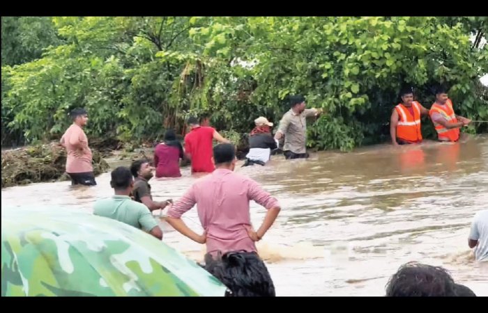 ગઈ કાલે ગુરુવારે સવારે દીવથી ફરવા આવેલા 6 સહેલાણીઓ ગીર ગઢડા તાલુકાના જામવાડા પાસે આવેલા જામજીર ઘોધ નજીક શીંગોડા નદીમાં અચાનક વધેલા પાણીના પ્રવાહમાં ફસાઈ ગયાં હતાં.આ અંગેની જાણ થતાં તુરંત જ જિલ્લા વહીવટી તંત્ર દ્વારા જિલ્લા પુરવઠા અધિકારી પારસ વાંદા તથા લાયઝન અધિકારી કોડીનાર, મામલતદાર, કોડીનાર અને ગીર ગઢડા, વેરાવળ ફાયર વિભાગ, કોડીનાર પોલીસ વિભાગ, જામવાળા ગામનાં સ્થાનિક લોકો તથા તરવૈયાની તાત્કાલિક કામગીરીથી તમામને સુરક્ષિત રીતે બચાવી લેવામાં આવ્યાં હતાં. સફળ રીતે રેસ્ક્યુ કર્યા બાદ તેઓને સારવાર માટે ઈ.ઇં.ઈ. ગીર ગઢડા ખાતે લઈ જવામાં આવ્યા હતા.