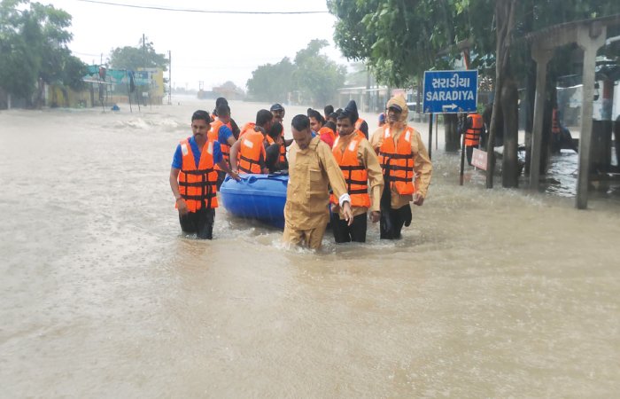 જૂનાગઢ રાજ્યભરમાં અતિભારે વરસાદની આગાહી હવામાન વિભાગ દ્વારા આપવામાં આવી હોવાના પગલે જૂનાગઢ જિલ્લામાં સતત વરસાદ વરસી રહ્યો છે. ત્યારે જિલ્લામાં અવિરત વરસાદ વરસી રહ્યો હોવાની સ્થિતિમાં જિલ્લા વહીવટીતંત્ર પણ સતર્ક અને સાવચેત છે. માણાવદર તાલુકાના સરાડીયા ગામે અને આસપાસ વાડી વિસ્તારમાં પાણીમાં ફસાયેલા સાત વ્યક્તિઓને જાણકારી મળતા જૂનાગઢ કલેક્ટર અનિલકુમાર રાણાવસિયાના નિદર્શન કામગીરી હેઠળ માણાવદર તાલુકાના સરાડીયા ગામે વાડી વિસ્તારમાં અલગ અલગ જગ્યાએ ફસાયેલા લોકોને રેસ્ક્યુ કરવામાં આવ્યા હતા.