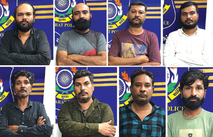 રાજકોટ એલસીબી ઝોન 1 પીએસઆઈ બી વી બોરીસાગર અને ટીમે બેડી હડમતીયા રોડ ઉપર ચાલતી ઘોડીપાસાની ક્લબ ઉપર દરોડો પાડી ક્લબ સંચાલક એવા ભિસ્તીવાડમાં રહેતા અને તાજેતરમાં જ ગુજસીટોકના ગુનામાં જામીન ઉપર મુક્ત થયેલ એજાઝ ઉર્ફે ટકો અકબરભાઈ ખિયાણી, હાજી ઈસ્માઈલભાઈ જુણેજા, સદામ ઉર્ફે ઇમુ હુશેનભાઈ શેખ, યુસુફ ઉર્ફે બકરો હબીબભાઈ ઠેબા, મહેબૂબ અલ્લારખાભાઈ અજમેરી, ઇમ્તિયાઝ ઉર્ફે ઠૂઠો અલ્લારખાભાઈ, પરેશ રમેશભાઈ ઝાલા અને તુષાર રમેશભાઈ લીડીયાની ધરપકડ કરી રોકડ 25,800, 39,500ના 9 મોબાઈલ, 2.35 લાખના 7 બાઇક સહિત 3,00,300 રૂપિયાનો મુદામાલ કબજે કરી નાસી છૂટેલા જુમો ઠેબાપુત્રા, જાવેદ ઉર્ફે પાઈદુ હુશેનભાઈ કુરેશી અને અનિલ વેલજીભાઈ ચૌહાણની શોધખોળ હાથ ધરી છે.