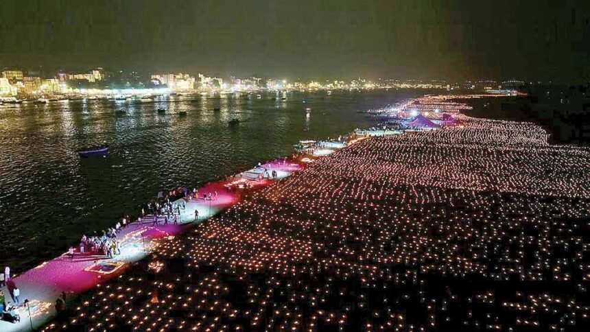 કાશીમાં આજે પૂનમના અવસરે દેવ દિવાળી છે. સીએમ યોગીએ નમો ઘાટ પર પહેલો દીવો પ્રગટાવ્યો. 84 ઘાટો પર 25 લાખ દીવા પ્રગટાવવામાં આવી રહ્યા છે. 15 લાખ દીવા પર્યટન વિભાગ અને 10 લાખ દીવાની વ્યવસ્થા સમિતિઓ અને કાશીવાસીઓએ કરી છે. 2024માં 20 લાખ દીવા પ્રગટાવવામાં આવ્યા હતા.