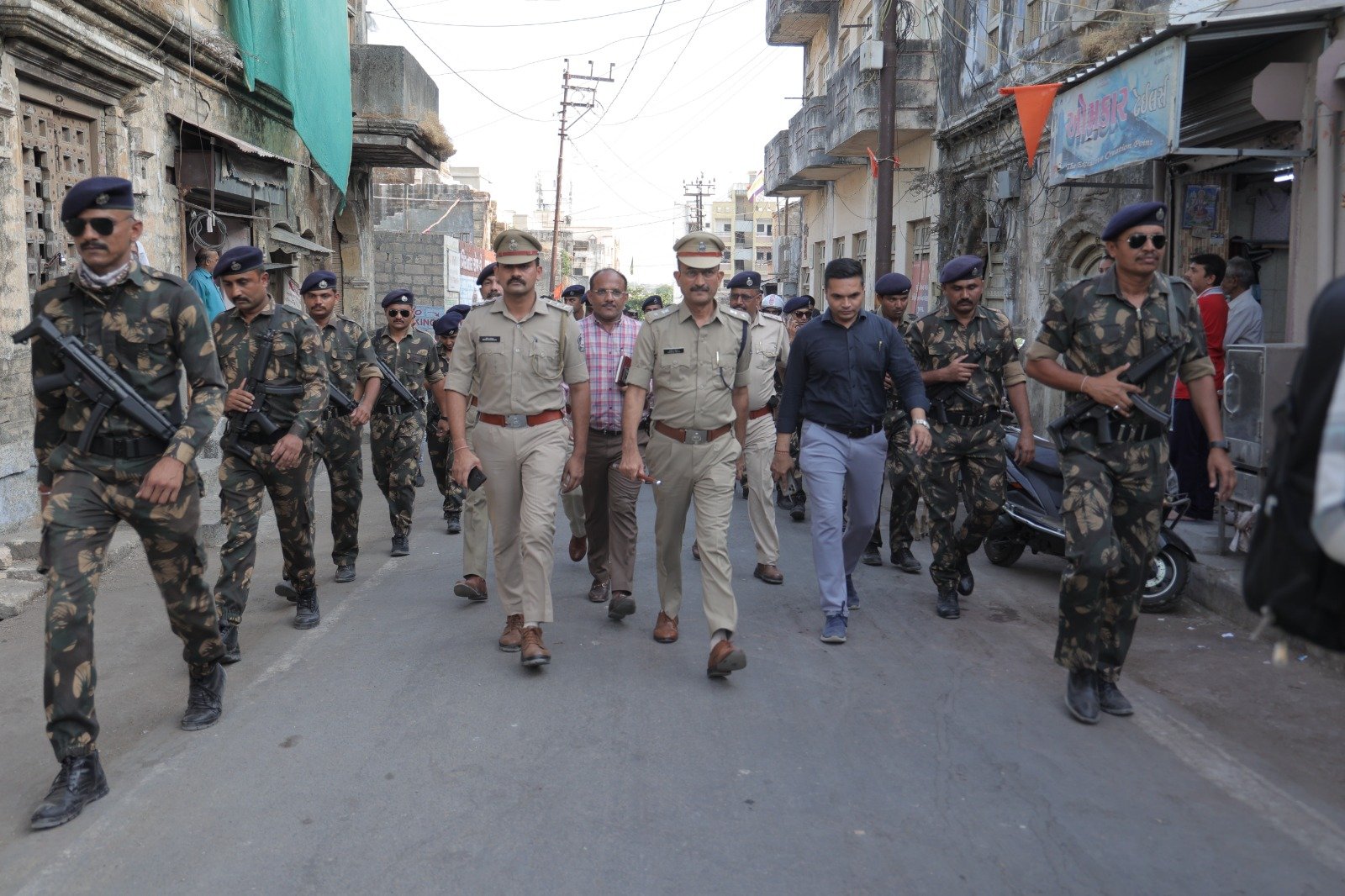 શોભાયાત્રા રૂટ પર ફ્લેગ માર્ચ યોજી પેટ્રોલિંગ કર્યું