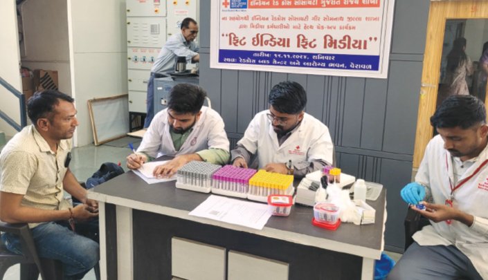 ઈન્ડિયન રેડ ક્રોસ સોસાયટી અને માહિતી ખાતાના સંયુક્ત ઉપક્રમે મીડિયા કર્મચારીઓનું હેલ્થ ચેકઅપ કરાયું