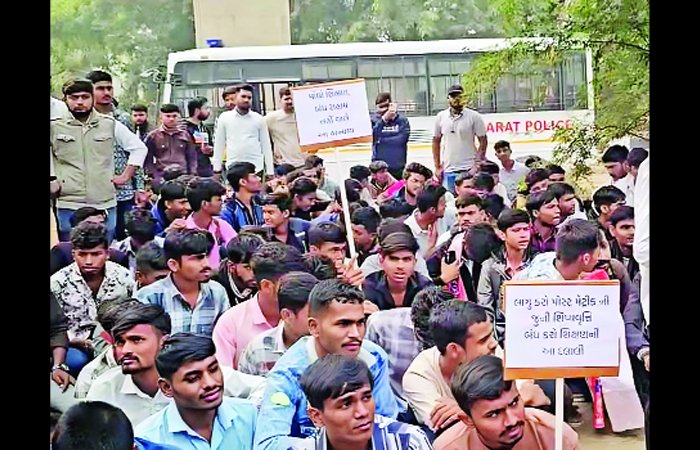 ABVPના પ્રાંત સહમંત્રી દીપ દેસાઈએ જણાવ્યું કે, ગુજરાતના જનજાતિ ગરીબ-મધ્યમ વર્ગના વિદ્યાર્થીઓ જેમણે કોલેજોમાં એડમિશન લઈ લીધું છે. તેમના વાલીઓને એવું હતું કે, વિદ્યાર્થીઓની ફી સરકાર ભરશે. હવે બિરસા મુંડા ભવનના અધિકારીઓ દ્વારા એક પરિપત્ર બહાર પાડવામાં આવ્યો છે કે, વિદ્યાર્થીઓની ફી અને તેમને લીધેલું એડિમિશન હવે મેનેજમેન્ટ કોટામાં ગણાશે. તેમની ફી સરકાર નહીં ભરે. આ મામલે વિદ્યાર્થી પરિષદે કલેક્ટરને આવેદન આપ્યું. મંત્રીને રજૂઆત કરી. પરંતુ કોઈ ઉકેલ ન આવતા આજે ABVP દ્વારા અહીં મોટી સંખ્યામાં વિરોધ કરવામાં આવી રહ્યો છે. અને આ તો હજુ ટ્રેલર છે, સાંજ પડતાં પડતાં પિક્ચર હજુ બાકી છે. તો પરિસરમાં બેઠેલા અધિકારીઓ માટે સ્પષ્ટપણે ચેતવણી કે પરિપત્ર રદ કરો.