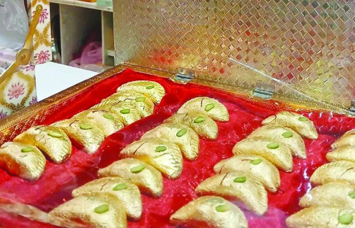 ગોંડામાં મિઠાઈના દુકાનદારે ગોલ્ડન ઘુઘરા પેશ કર્યા છે. તેની એક કિલોની કિંમત રૂા.50,000 છે.એક નંગ ઘુઘરા રૂા.1300 માં વેચાય છે છતાં તે ખરીદવા લોકોની ભીડ ઉમટી રહી છે. સોનાની વરખથી બનેલા આ ઘુઘરાએ લોકોમાં જોરદાર આકર્ષક સજર્યુ છે.ઘુઘરામાં સોનાની વરખ ઉપરાંત કાશ્મીરી કેસસ, સ્વર્ણ ભસ્મ,પિસ્તા, કાજુ-બદામ તથા ખાસ ડ્રાયફ્રુટ પણ છે. 24 કેરેટ ગોલ્ડન વરખથી સજાવાયા છે.