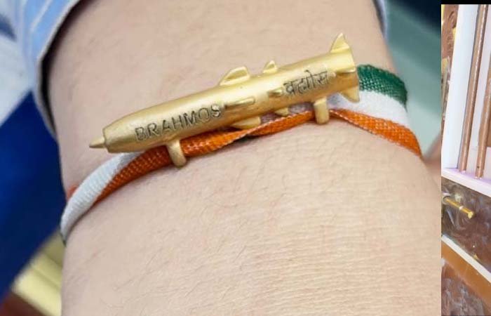 ડિઝાઇન અને ધાતુ: સુરતના જ્વેલર્સે બ્રહ્મોસ મિસાઈલની ડિઝાઈનવાળી નાની રાખડીઓ સોના અને ચાંદીમાં તૈયાર કરી છે.