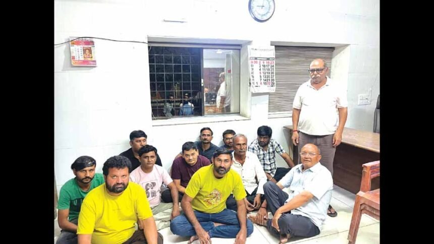 મોરબી સિટી એ ડીવીઝન પોલીસ ટીમને ખાનગીરાહે બાતમી મળેલ કે પ્રિયદર્શન પુર્ણશંકરભાઇ ઠાકર રહે. મોરબી રવાપર રોડ સોમનાથ સોસાયટી પ્લેટીનિયમ હાઇટસ 601 વાળા લાતીપ્લોટ શેરીનં.1/2 વચ્ચે આવેલ પોતાની ઓફીસમા બહારથી માણસો બોલાવી જુગારનો અખાડો ચલાવેછે. જેથી બાતમીવાળી જગ્યાએ રેઇડ કરતા જુગાર રમતા 12 (બાર) ઇસમો પ્રિયદર્શન પુર્ણશંકરભાઇ ઠાકર (ઉ.વ.60) રહે.મોરબી રવાપર રોડ સોમનાથ સોસાયટી પ્લેટીનિયમ હાઇટસ 601, ભાવેશભાઇ જેરામભાઇ અઘારા (ઉ.વ.39) રહે.સરવડ ઉમીયાનગર તા. માળીયા (મી), સંજયભાઇ લક્ષ્મીદાસભાઇ રોજીવાડીયા (ઉવ.52) રહે. મોરબી રવાપર એસ.પી.રોડ ફલોરા-ડી બ્લોકનં.801, દીલીપભાઇ રણછોડભાઇ દેત્રોજા (ઉ.વ.45) મોરબી રવાપર રોડ તળાવની બાજુમા મુળરહે.નીચીમાંડલ તા.મોરબી, ફારૂકભાઇ દાઉદભાઇ સલેમાનભાઇ ચાનીયા (ઉ.વ.53) રહે.લુવાણાપરા શેરીનં.1 દાણાપીઠ મોરબી, બલભદ્રસિંહ ઉપેન્દ્રસિંહ રામસિંહ જાડેજા (ઉ.વ.66) રહે.મોરબી શનાળા રોડ ગુ.હા.બોર્ડ શનીદેવ મંદીર પાસે ત્રણ માળીયામા મુળરહે.સજનપર (ઘુનડા) તા.ટંકારા, અમીતભાઇ ગુણવંતભાઇ તુલસીભાઇ ગૌસ્વામી (ઉ.વ.40) રહે.મોરબી ક્ધયા છાત્રાલય રોડ સુપરમાર્કેટ પાછળ ચાણકયુપુરી ” ઓમ ટાવર” ફલેટ નં.601 મુળરહે.ઉટબેટ શામપર તા.મોરબી, અકબરભાઇ જુસબભાઇ કટીયા (ઉ.વ.39) રહે.મોરબી જુના બસસ્ટેન્ડ ઇદ મસ્જીદ પાછળ શેરીનં.2, સુભાનભાઇ ઇકબાલભાઇ જેડા (ઉ.વ.37) રહે.મોરબી ખ્વાજા પેલેસ વાળી શેરી જોન્શનગર, જુસબભાઇ ગુલમામદભાઇ મોવર (ઉ.વ.40) રહે.મોરબી જુના બસસ્ટેન્ડ પાછળ ઇદ મસ્જીદ પાસે મોરબ, પ્રાણજીવનભાઇ સવજીભાઇ સંઘાણી (ઉ.વ.63) રહે.મોરબી કેનાલ રોડ રાધાક્રિષ્ના સોસાયટી મુળ રહે.વવાણીયા તા. માળીયા(મી) ભરતભાઇ તળશીભાઇ સાંદેશા (ઉ.વ.35) રહે.મોરબી મોટી માધાણી શેરી રૂદ્ર ફલેટ નં.203 મુળ રહે.રાધનપુર ઠાકોરવાસ પ્રભાત ટોકીઝ પાસે જી. પાટણવાળાને પકડી પાડી ઇસમો પાસેથી રોકડ રૂ.2,0,8200/- તથા મોબાઇલ નંગ-11 કિ.રૂ.1,80000/- તથા એક કાર તથા ત્રણ બાઇક કિ.રૂ.6,50,000/- મળી કુલ રૂ.10, 38,200/- નો મુદામાલ કબ્જે કરી મોરબી સીટી એ ડીવી.પો.સ્ટે.મા ઇસમો વિરુધ્ધ જુગારધારા કલમ.4-5 મુજબનો ગુન્હો રજીસ્ટર કરી કાયદેસરની કાર્યવાહી કરવામાં આવેલ છે.