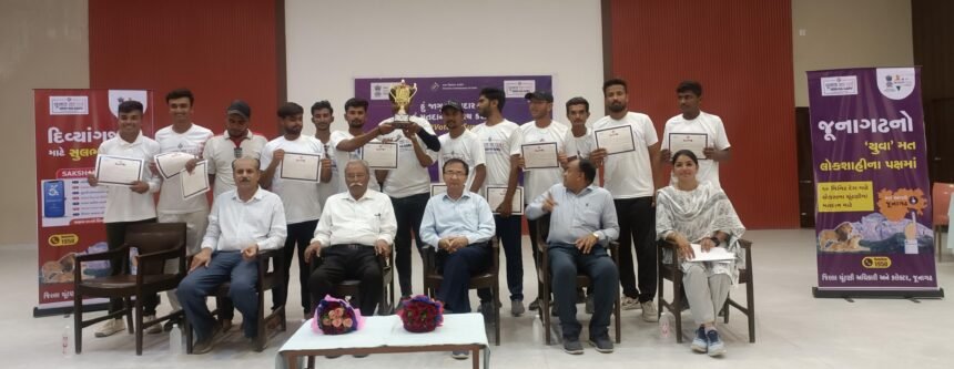 જૂનાગઢ જિલ્લા ચૂંટણી તંત્ર દ્વારા લોકસભા ચૂંટણીને લઈને મતદાન જાગૃતિ માટે વિવિધ કાર્યક્રમો યોજવામાં આવી રહ્યા છે.જૂનાગઢ જિલ્લાના ચાંપરડા ગામ ખાતે મતદાન જાગૃતિ માટે ક્રિકેટ ટુર્નામેન્ટનું આયોજન કરવામાં આવ્યું હતું.