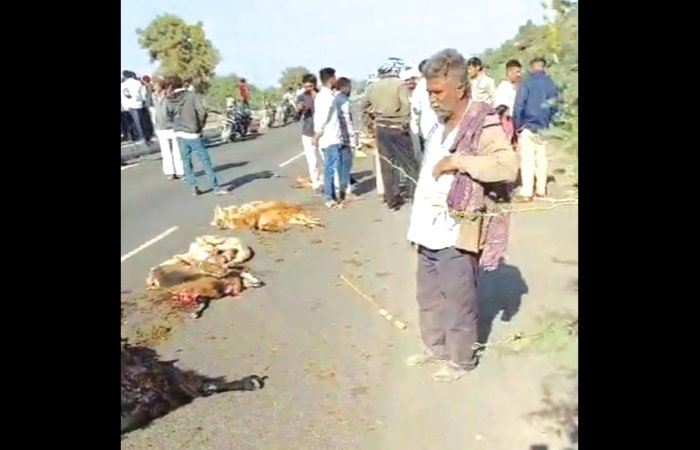 સુરેન્દ્રનગર જિલ્લામાં ખનિજ વાહન કરતા વાહનો બેફામ બન્યા છે જેને રોકવાની સામે આર.ટી.ઓ, પોલીસ અને ખનિજ વિભાગ પણ પાંગળું સાબિત થયું છે. ત્યારે વારંવાર આ પ્રકારે ખનીજના વાહનો એક બાદ એક જીવ લેતા નજરે પડે છે પરંતુ સ્થાનિક તંત્રને પેટનું પાણીય હાલતું નથી તેવામાં ફરી એક વખત હાઇવે પર માતેલા સાંઢની માફક દોડતા ડમ્ફરે એક પશુપાલક અને 40 જેટલા અબોલ પશુઓને કચડયા છે. જેમાં સાયલા – પાળીયાદ હાઇવે પર ગઈ કાલે બપોરના સમયે કચ્છના પશુપાલક સાજણભાઇ કરનભાઈ, બાબુભાઈ દેવાભાઇ અને ધનજીભાઈ કરમશિભાઇ પોતાના ગાડ બકરાને લઈને નિકળા હોય તેવા સમયે ફૂલ સ્પીડ આવતા ડમ્ફર ચાલકે પશુપાલક સહિત ઘેટાં બકરાને પણ અડફેટે લીધા હતા જેના 40 જેટલા ઘેટાં બકરાં ઘટનાસ્થળે જ કરૂણ મોત નીપજતાં હતા જ્યારે પશુપાલકોને તાત્કાલિક સારવાર હેઠળ હોસ્પિટલ ખસેડયા હતા. આ તરફ ઘટનાની જન થતાં જ મામલતદાર, પોલીસ સહિતના અધિકારી દોડી ગયા હતા અને રાહદારીઓને પણ ટોળા હાઇવે પર એકત્ર થયા હતા ત્યારે વારંવાર આ પ્રકારની સ્થિતિ ઉદભવતા સ્થાનિકોમાં ડમ્ફર ચાલકોને છાવરવાના લીધે આ પ્રકારના બનાવોથી તંત્ર સામે પણ રોષ ભભૂક્યો છે.