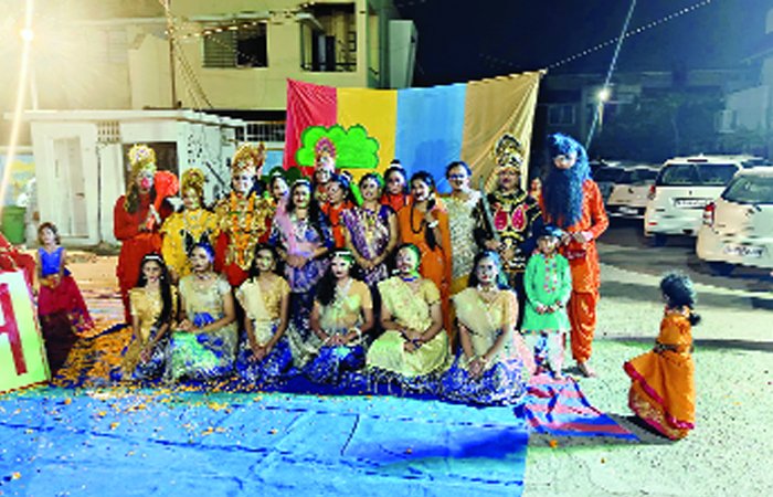 હાલ નવરાત્રી ચાલી રહી છે. માં અંબાની આરાધનામાં માઈ ભક્તો સમર્પણ ભાવથી સાધના અને રાસ ગરબા લઈ રહ્યા છે. ત્યારે રાજકોટમાં રામાપીર ચોક પાસે સ્વપનલોક સોસાયટીમાં ગરબી મંડળની બહેનો એ રામાયણનું ભવ્યાતિભવ્ય નાટક રજુ કરી શ્રોતાઓને મંત્રમુગ્ધ કરી દીધા હતા. સ્વપ્નલોક સોસાયટીની પ્રાચીન ગરબીમાં બાળાઓ દ્વારા અવનવા પરંપરાગત રાસ ગરબા રજૂ કરવામાં આવે છે. બહેનો દ્વારા નવરાત્રી દરમ્યાન તલવાર રાસ, બેડલું રાસ, શ્રી કૃષ્ણ રાસ, અઠંગા રાસ સહિત સાંસ્કૃતિક નાટકો રજૂ કરવામાં આવે છે.