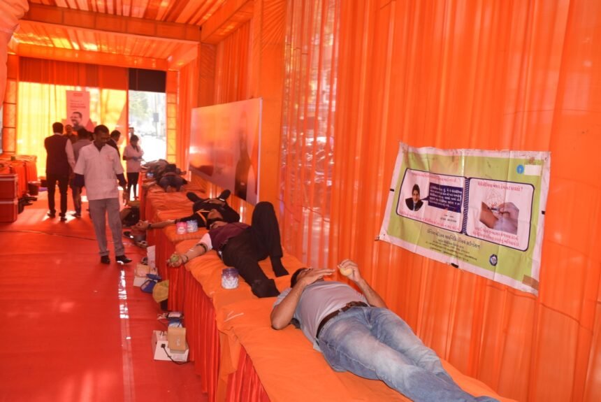 પુજારા ટેલિકોમ ખાતે મેગા બ્લડ ડોનેશન કેમ્પમાં મોટી સંખ્યામાં લોકો જોડાયા