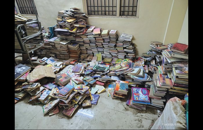 સાર્વજનિક પુસ્તકાલયના પુસ્તકો અને ફર્નિચર ધૂળ ખાઈ રહ્યા છે