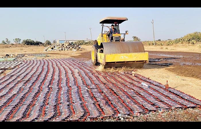 એસડીએમ, ડીવાયએસપી, મામલતદાર, પીઆઈ સહિતના અધિકારીઓની હાજરીમાં કરોડો રૂપિયાનો દારૂનો નાશ
