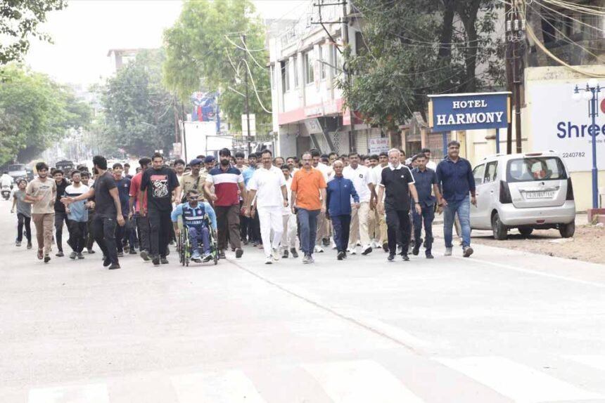 ‘રન ફોર યુનિટી’નું આયોજન ધી દુલિપ સ્કૂલ ઓફ ક્રિકેટથી શરૂ થઈ સરદાર વલ્લભભાઈ પટેલ રોડ, રામ ગેસ્ટ હાઉસ, ભાવેશ્વર મંદિર, સત્યનારાયણ મંદિર, ફ્રેન્ડ્સ પેટ્રોલપંપ, એમ.જી. રોડ, હાર્મની સર્કલ, યુગાન્ડા રોડ, સરદાર પટેલ ચોક રેલ્વે સ્ટેશન સર્કલ સુધી યોજાઈ હતી.અને રેલ્વે સ્ટેશન સર્કલ પાસે આવેલી સરદાર પટેલની પ્રતિમાને પુષ્પાંજલિ અર્પણ કરી હતી. કાર્યક્રમમાં જિલ્લા કલેક્ટર એસ.ડી. ધાનાણી, જિલ્લા પોલીસ વડા ભગીરથસિંહ જાડેજા, જિલ્લા વિકાસ અધિકારી બી.બી. ચૌધરી, મ્યુનિસિપલ કમિશનર હસમુખભાઈ પ્રજાપતિ, જિલ્લા ભાજપ પ્રમુખ ડો. ચેતનાબેન તિવારી, શહેર ભાજપ પ્રમુખ સાગરભાઈ મોદી, વ્હીલ ચેર ક્રિકેટર ભીમાભાઈ ખુટી, અશોક મોઢા,સામતભાઈ ઓડેદરા તથા અગ્રણીઓ સહિત મોટી સંખ્યામાં નાગરિકોએ જોડાયા હતાં અને રાષ્ટ્રીય એકતા અને અખંડિતતા જાળવવાના સંકલ્પ સાથે ’એકતા શપથ’ લેવામાં આવ્યા હતા. ઉલ્લેખનીય છે કે સરદાર વલ્લભભાઈ પટેલની 150મી જન્મજયંતિ નિમિત્તે ઉજવાતો રાષ્ટ્રીય એકતા દિવસ રાષ્ટ્રની એકતા, અખંડિતતા અને સમરસતાના સંકલ્પને પુન:પ્રતિબિંબિત કરે છે. આ પ્રસંગે મંત્રી સહિત નગરજનોએ રન ફોર યુનિટીમાં જોડાઈને દેશની એકતા માટે અડગ પ્રતિબદ્ધતા વ્યક્ત કરી હતી.