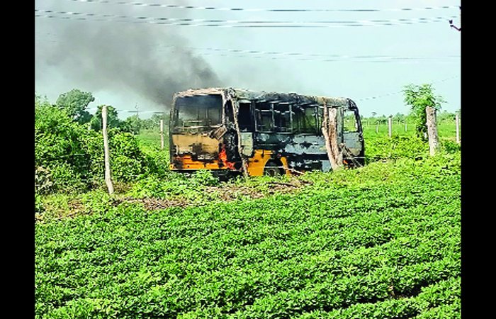 શોટ સર્કિટ થતા બસમાં આગ લાગી હોવાની માહિતી