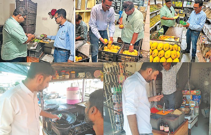 આજરોજ મનપાની ફૂડ વિભાગની ટીમ દ્વારા ભગવતી ચાઇનીઝ પંજાબી, ખોડિયાર ચાઇનીઝ પંજાબી, કટકબટક પૂરી શાક, જય ભવાની ઢોસા, કરીમ’સ એગ્ઝ સેન્ટર, ચામુંડા સ્ટીમ ઢોકળા, મોમાઈ ફરસાણ, કુળદેવી ચાઇનીઝ પંજાબી, જય ભગીરથ કચ્છી દાબેલી, ભોલેનાથ પાણીપૂરી, શિવ દાળપકવાન, બોમ્બે વડાપાઉં, દિલખુશ પાણીપુરી, મહાકાળી પાણીપુરી, જય અંબે પૂરીશાક, અભી ફાસ્ટફૂડ, ગણેશ વડાપાઉં, મહાદેવ ફરસાણને લાઇસન્સ મેળવવા બાબતે નોટિસ આપવામાં આવી હતી તથા પટેલ ઘૂઘરા, બાલાજી દાળપકવાન, બાલાજી ઘૂઘરા, બાલાજી ભૂંગળા બટેટા, કદંબ દાબેલી, કદંબ ભજીયા વડાપાઉં, શ્રીજી બ્રેડ સેન્ટર, આશાપુરા દાળપકવાન, આશાપુરા ઘૂઘરા, રાજ મેગી, રાજ દાળપકવાન, મારૂતિ અલ્પાહાર, એચ. કે. ઇડલી સંભાર, અનમોલ ફરસાણ, શ્રીરામ ફરસાણ, શિવશક્તિ નાસ્તા ગૃહ, જલિયાણ ફરસાણ, મુરલીધર ફરસાણ, જય અંબે પકોડા, ગણેશ ચાઇનીઝ પંજાબીની ચકાસણી કરવામાં આવી હતી. સાથે જ ઉનાળામાં મેંગો જ્યુસનું વેચાણ કરતાં ધંધાર્થીઓને ત્યાં કેરીના રસના નમૂના લેવામાં આવ્યા હતા આમ કેરીના રસના કુલ 10 ધંધાર્થીઓને ત્યાં નમૂના લેવાયા હતા. જેમાં શ્રી ન્યુ પટેલ ડેરી ફાર્મ, જય ભોલે રસ, જય ભોલે રસ (ભંડાર), શ્રી નવરંગ ડેરી ફાર્મ, શ્રી નવરંગ ડેરી ફાર્મ, ન્યુ વૃંદાવન ડેરી ફાર્મ, આકાશ કેટરર્સ પ્રા. લી., ખોડિયાર પ્રોવિઝન સ્ટોર, બાપા સીતારામ ડેરી, કનૈયા ડેરી ફાર્મને ત્યાંથી રસના નમૂના લેવાની કામગીરી હાથ ધરવામાં આવી હતી.