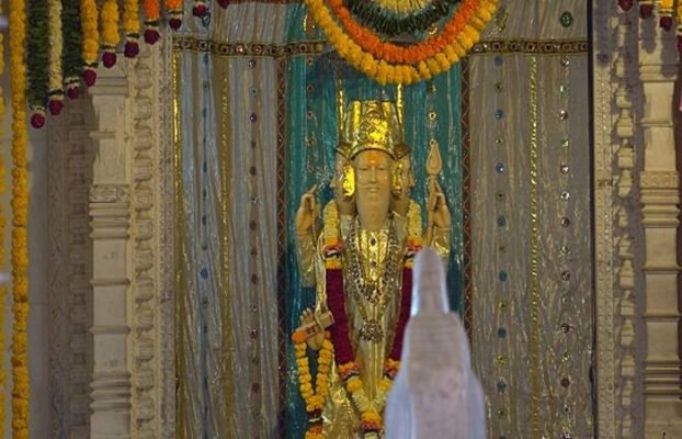 વિષ્ણુજીની મૂર્તિ દક્ષિણ ભારતના કારીગરોએ વિશેષ કાળા પત્થરમાંથી કંડારી છે
