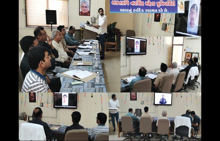 રાષ્ટ્રીય યુવા સંસદ મહોત્સવ (ગઢઙઋ) 2019થી દર વર્ષે આયોજિત કરવામાં આવે છે જેની વિકસિત ભારત યુવા સંસદ તરીકે ફરીથી કલ્પના કરવામાં આવી છે જેથી ભારતમાં યુવાઓને પોતાનું મંતવ્ય વ્યક્ત કરવાનું એક પ્લેટફોર્મ મળી શકે. ભારતના યુવાનો માત્ર વિકાસના લાભાર્થી નથી, પણ તેના ભવિષ્યના શિલ્પકાર પણ છે તેવા વિઝન સાથે વિકસિત ભારત 2047 સહ સંકળાયેલ વિકસિત ભારત યુવા સંસદ ભારતાના માનનીય પ્રધાનમંત્રી નરેન્દ્ર મોદીજી દ્વારા 2017માં પ્રસ્તાવિક કરવામાં આવ્યુ હતુ. ભારતના યુવાનો માટે આપણા રાષ્ટ્રના ભવિષ્ય પર તેમના દ્રષ્ટિકોણ અને વિચારો વ્યક્ત કરવાની આ એક અનોખી તક છે ત્યારે ભક્તકવિ નરસીંહ મહેતા યુનિ. સંલગ્ન કોલેજમાંથી વિકસિત ભારત યુવા સંસદમાં ભાગ લેવા ઇચ્છતા 18 થી 25 વર્ષના વિદ્યાર્થીઓ (એન.એસ.એસ. સ્વયંસેવકો તેમજ અન્ય વિદ્યાર્થીઓ) માય ભારત પોર્ટલ પર Mega Event dp„ Viksit Bharat Youth Parliamentપર પોતાનું રજીસ્ટ્રેશન પુર્ણ કરી What does Viksit Bharat mean to you?quot; rવિષય પર વિડીયો બનાવી અપલોડ કરી સહભાગી બન્યા છે. વિદ્યાર્થીઓ દ્વારા અપલોડ કરવામાં આવેલ વિડીયોનું યુનિ. સ્ક્રિનીંગ કમિટી દ્વારા નિરીક્ષણ કરવામાં આવ્યુ હતુ.