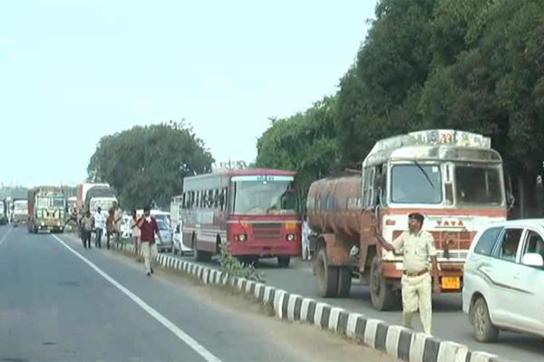 અકસ્માતને પગલે ટ્રાફિકજામના દ્રશ્યો સર્જાયા હતા.