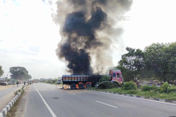 જ્યારે ડીસાથી પાલનપુર તરફ જતી ઇકો કાર પણ ટ્રકને ધડાકાભેર અથડાઈ હતી. આ રીતે ચાર વાહનો વચ્ચે અકસ્માત થયો હતો. જોકે, બંને ટ્રક વચ્ચે ફસાયેલી રિક્ષામાં અચાનક આગ લાગતા ટ્રક, ટ્રેલર અને રિક્ષા ભડભડ સળગવા લાગ્યા હતા.