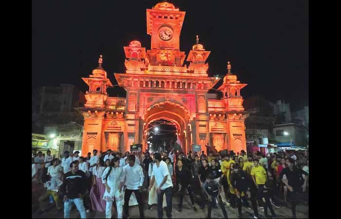 રવિવારે યોજાયેલા કાર્યક્રમમાં નેહરુ ગેટ ચોક પર મોટી સંખ્યામાં લોકો મન મૂકીને ગરબે ઘૂમ્યા