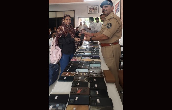 ગુજરાત સરકાર દ્વારા મિલકત વિરુદ્ધના ગુન્હામાં કબજે કરવામાં આવેલ મુદ્દામાલ ફરિયાદી/માલિકને તાત્કાલિક મળી જાય તે માટે તેરા તુજકો અર્પણ કાર્યક્રમ અંતર્ગત કાર્યવાહી કરવા અભિયાન ચલાવવામાં આવે છે. અમદાવાદના જે ડિવિઝનના એસીપી પ્રદીપસિંહ જાડેજાના માર્ગદર્શન હેઠળ ઝોન 06 વિસ્તારના પોલીસ સ્ટેશનોમાં ગુમ થયેલા મોબાઈલ ફોન ઝોન 06 એલસીબી તથા ટેકનિકલ સેલના ઇન્ચાર્જ પીએસઆઇ એન.કે.જાડેજા, પી.એસ.આઈ.એમ.ડી. રાઠવા, પો.કો. રાજેશભાઈ તથા કઈઇ સ્ટાફ સહિતની ટીમ દ્વારા ઈઊઈંછ પોર્ટલ અંતર્ગત લોકોના ગુમ થયેલા કુલ 90 મોબાઈલ ફોન કિંમત રૂ. 14,15,027/- નો મુદ્દામાલ શોધી કાઢવામાં આવ્યા હોઈ, ઝોન 06ના પોલીસ અધિકારીઓ તથા સ્ટાફ દ્વારા ફરિયાદી/અરજદારને સામેથી બોલાવી, તમામ કાર્યવાહીમાં મદદરૂપ થઈ, તાત્કાલિક મુદ્દામાલ પરત સોંપવા કાર્યવાહી કરવામાં આવતા, ગુમ થયેલ મુદ્દામાલ ફરિયાદી/અરજદારને ડીસીપી કચેરી ખાતે રૂબરૂ બોલાવી પોલીસ અધિકારીઓ તથા સ્ટાફની હાજરીમાં સોંપવામાં આવ્યા હતા.