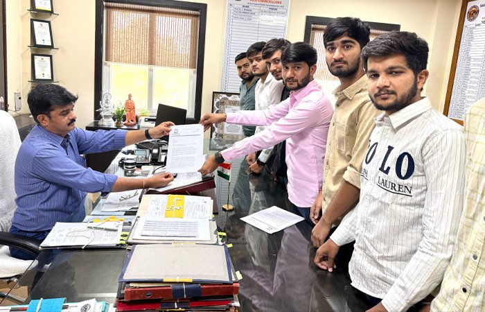 સૌરાષ્ટ્ર યુનિવર્સિટી સહિત રાજ્યની મોટાભાગની સ્ટેટ યુનિવર્સિટીમાં સ્ટેચ્યુટ લાગુ કરી દેવામાં આવ્યો છે.મોટાભાગની કામગીરી હવે નવા સ્ટેચ્યુટના આધારે કરવામાં આવી રહી છે.પરંતુ નવા સ્ટેચ્યુટમાં કોલેજો વિદ્યાર્થીઓ પાસેથી કેટલી ફી વસૂલી શકશે તેના માટે ઋછઈની કમિટી બનાવવાની પણ જોગવાઈ કરવામાં આવી છે પરંતુ સૌરાષ્ટ્ર યુનિવર્સિટીમાં હજુ સુધી એફઆરસી કમિટી જ બની નથી ! જેના કારણે વિદ્યાર્થીઓ કોલેજોની ઊંચી ફી આપવા મજબૂર બન્યા છે અને કોલેજો પણ બેફામ ફી વસૂલવા લાગી છે. યુનિવર્સિટીના સત્તાધીશોનો કોલેજો ઉપર જાણે કોઈ અંકુશ જ ન હોય એમ કેટલીક કોલેજોએ બેફામ ફી વસૂલવાનું શરૂ કરી દીધું છે તે બાબતે આજે કોંગ્રેસના વિદ્યાર્થી પ્રતિનિધિ રોહિતસિંહ રાજપૂતની આગેવાનીમા ડેલિગેશન આજે કુલપતિને ધારદાર રજૂઆત કરી હતી.