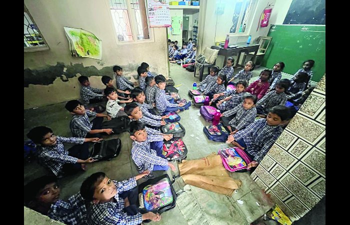 રાજ્યની ભાજપ સરકાર સરકારી શાળાઓમાં સ્માર્ટ ક્લાસરૂમમા ડિજિટલ એજ્યુકેશનમાં બણગાઓ માત્ર સોશિયલ મીડિયા પર ફુકંતા જોવા મળે છે પરંતુ વાસ્તવિકતા કંઈક જુદી જ છે ! આ વિસ્તારમાં વસતા ગરીબ વર્ગના બાળકો માટે આ જ એક માત્ર સરકારી શાળા છે.શાળાની ક્ષમતા ઓછી હોવાથી મોટી સંખ્યામાં વિદ્યાર્થીઓને શિક્ષણ માટે મજબૂરીમાં ખાનગી શાળાઓનો પ્રવેશ લેવો પડે છે.