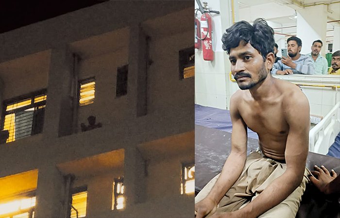 રાજકોટની સિવિલ હોસ્પિટલમાં બીમારી સબબ સારવાર લઇ રહેલા દર્દીએ ટ્રોમા સેન્ટરના પાંચમા માળેથી કૂદકો મારવાનો પ્રયાસ કરતા ફાયરબ્રિગેડ સ્ટાફે તુરંત પહોંચી યુવકને બચાવી લઇ તેની પૂછતાછ કરતા તે મૂળ મધ્યપ્રદેશનો અને હાલ અમરેલીના નાની વડાળી ગામે મજૂરીકામ કરતો હોવાનું અને છેલ્લા છ દિવસથી પગની સારવાર માટે હોસ્પિટલમાં પાંચમા માળે દાખલ હોય મરી જવાના રટણ સાથે રાત્રીના વોર્ડના બાથરૂમની બારી તોડી છાજલી પર આવતા લોકો એકઠા થઇ ગયા હતા.