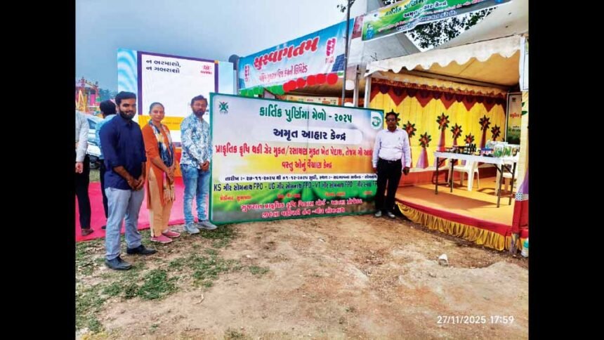 જેના સહકાર થકી કાર્તિક પૂર્ણિમા ઉત્સવ દરમ્યાન સરસ મેળા માં તા. 27 /11/25 થી 06/12/25 અને સોમનાથ ટ્રસ્ટના કાર્યાલય પાસે અમૃત આહાર કેન્દ્રને ખુલ્લું મૂકવામાં આવ્યું હતું. જેમાં ગીર સોમનાથ જિલ્લાના વધુમાં વધુ નાગરિકો દ્વારા મુલાકાત લેવા તેમજ પ્રાકૃતિક ખેતી થકી ઉત્પાદિત ઝેર મુકત/રસાયણમુકત ખેત પેદાશો અને ગૌ આધારિત પ્રોડક્ટના પ્રદર્શન નિહાળવા તેમજ દૈનિક જીવનમાં નિયમિતપણે ઉપયોગ કરવા માટે આત્માના પ્રોજેક્ટ ડાયરેક્ટર શ્રી પુષ્પકાંત સ્વર્ણકાર અને જિલ્લા વહીવટી તંત્ર, ગીર સોમનાથ દ્વારા વિનંતી કરવામાં આવેલ છે.