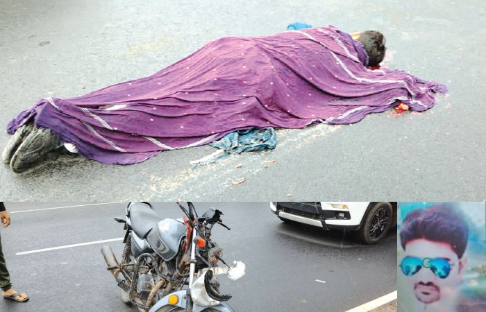 આખલો બાઇક સાથે અથડાતાં પટકાયેલા યુવક ઉપર ડમ્પર ફરી વળ્યું