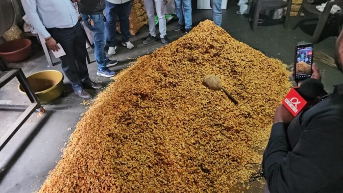 રાજકોટ મહાનગરપાલિકાની ફૂડ વિભાગની ટીમ સાથે આરોગ્ય અધિકારી ડો. જયેશ વકાણી, ફૂડસેફ્ટી ઓફિસર કે. એમ. રાઠોડ, ફૂડ સેફ્ટી ઓફિસર કે. જે. સરવૈયા, ફૂડ સેફ્ટી ઓફિસર સી. ડી. વાઘેલા સાથે સર્વેલન્સ ચેકીંગ દરમિયાન દિનદયાળ ઈન્ડ. એરિયા, શેરી નં. 6, આજી ડેમ ચોકડી પાસે આવેલી કલ્પેશભાઈ બડોખરીયા- જીતેન્દ્રભાઈ ગુપ્તાની ઉત્પાદક પેઢી કલ્પેશ ટ્રેડર્સ- જે.કે. સેલ્સની સ્થળ પર તપાસ કરવામાં આવી હતી. જ્યાં આ પેઢીમાં દાબેલા ચણા, મગ, કઠોળ વગેરે નમકીનનું ઉત્પાદન કરી વેચાણ કરતાં હોવાનું જાણવા મળતાં પેઢીમાં ઉત્પાદન દરમિયાન ઉપયોગમાં લેવાતા પલાળેલ ચણા ફૂગવાળા તેમજ અનહાઈજેનિક રીતે જમીન પર રાખેલા જોવા મળ્યા હતેમજ તેમાં શંખજીરૂનો ઉપયોગ થતો હોવાનું સામે આવ્યું હતું. જે પેઢીના ઉત્પાદકો દ્વારા સ્વીકારવામાં આવ્યું છે.