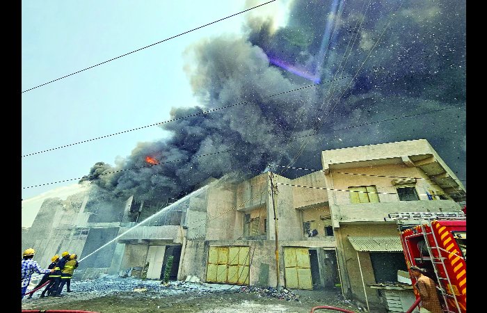 રાજકોટ-અમદાવાદ હાઇવે પર શેમ્પુની ફેક્ટરીમાં આગ લાગતાં 7 ફાયર ફાઇટર ઘટનાસ્થળે