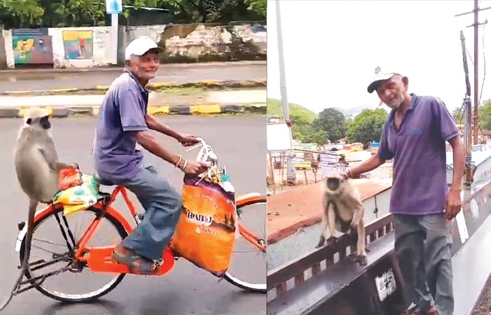 સામાન્ય રીતે વન્ય પ્રાણી અને માનવ વચ્ચે ગજગ્રાહ જોવા મળતો હોઈ છે.જેમાં માનવ વન્ય પ્રાણીને જોઈને ડરના લીધે દૂર ભાગતા હોઈ છે.અને એજ રીતે વન્ય પ્રાણીઓ પણ માનવને જોઈને બને ત્યાં સુધી દૂર રહેતા હોઈ છે.પણ ભવનાથ તળેટીમાં સફાઈ કામગીરી કરનાર સફાઈ કામદાર રઘુભાઇ ચુડાસમા સાથે કપિરાજનો અનેરી દોસ્તી જોવા મળે છે.કે, જાણે બંને વચ્ચે કોઈ વર્ષો જૂની દોસ્તી હોઈ તેવી રીતે વર્તન જોવા મળે છે.જયારે સફાઈ કર્મી કપિરાજ પાસે જાય છે.ત્યારે કપિરાજને માથા પર હાથ ફેરવે છે.તેને રમાડે છે.એટલુંજ નહિ કપિરાજ પણ એટલો રઘુભાઇ સાથે હળીમળીને રહે છે જયારે રઘુભાઇ પોતાની સાઇકલ લઈને આવે છે.તો તેની સાથે સાઇકલ સવારી કરીને આનંદ માણતા હોઈ તેવા પ્રેમ ભર્યા દર્શ્યો જોવા મળે છે.આ માનવ અને કપિરાજની અનેરી દોસ્તી જોઈને લોકો પણ પ્રાણી પ્રત્યેના અનેરા પ્રેમને સલામ કરે છે.