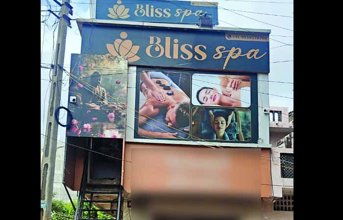 રાજકોટમાં સ્પાની આડમાં ચાલતા કુટણખાના ઉપર કડક કાર્યવાહી કરવા પોલીસ કમિશ્નર બ્રજેશ ઝા, એડિશનલ સીપી મહેન્દ્ર બગરીયા, ડીસીપી ક્રાઇમ જગદીશ બાંગરવા, એસીપી ક્રાઇમ બી બી બસિયાની સૂચના અને માર્ગદર્શન હેઠળ એન્ટી હ્યુમન ટ્રાફિકિંગ યુનિટના પીઆઇ ભાર્ગવસિંહ ઝણકાંત, પીએસઆઈ એ કે ગોસ્વામી, મહંમદઆરીફ અંસારી, હસમુખભાઈ બાલધા, ભુમિકાબેન ઠાકર, મહેશ પ્રસાદ અને જ્યોતિબેન બાબરીયા સહિતની ટિમ પેટ્રોલિંગમાં હતી દરમિયાન સ્ટાફને મળેલી બાતમી આધારે નાણાવટી ચોકમાં આવેલા બ્લિસ સ્પામાં દરોડો પાડયો હતો પોલીસે સ્પામાં સર્ચ કરતા એક ગ્રાહક એક રૂપલલના સાથે કઢંગી હાલતમાં મળી આવ્યો હતો તેનું નામઠામ પૂછતાં ગ્રાહક શિવપરાનો મિલન સુરેશ પરમાર હોવાનું જણાવ્યું હતું પોતે સ્પામાં પ્રથમ વખત આવ્યો હોવાનું અને શરીરસંબંધ બાંધવાનું કહેતા સ્પાના કર્મચારીઓ અને રૂપલલનાએ 11,500 તેમની પાસેથી પડાવ્યા હોવાની કબૂલાત આપી હતી પોલીસે 3 મહિનાથી સ્પાના ઓથાર હેઠળ ચાલતા આ કુટણખાનાના સંચાલક જીવરાજ પાર્ક અરિહંત ફ્લેટના રાહુલ આલાભાઈ સાંડપા, રિસેપ્સનિષ્ટ તરીકે કામ કરતી આંબેડકરનગરની એકતાબેન ધીરુભાઈ વાઘેલા અને પંજાબની ગુરપ્રીત કૌર કુલદીપચંદ તેમજ મોજમજા કરવા આવેલા ગ્રાહક મિલન પરમાર સામે ગુનો નોંધી ધરપકડ કરી હતી ગ્રાહકો પાસેથી રૂ.2500થી 5000 વસૂલાતા હતા.