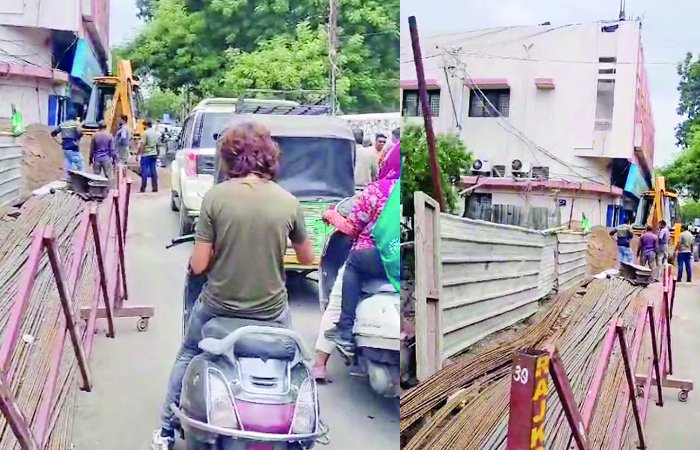 યાજ્ઞિક રોડ પર બેંક ઓફ બરોડાની બાજુમાં એક બિલ્ડિંગનું બાંધકામ ચાલુ હોવાથી રાહદારીઓને ઘણી મુશ્કેલી ભોગવવી પડી રહી છે, બિલ્ડિંગના બાંધકામ માટે ઢગલા રોડ પર ઠાલવી દેતાં જાહેર રસ્તાને ખાનગી કામ માટે ઉપયોગમાં લેવાતા યાજ્ઞિક રોડ પર ટ્રાફિક જામના દૃશ્યો સર્જાયા હતા અવાર નવાર રાજકોટમાં ખાનગી બાંધકામ માટે રસ્તાઓ પર મોટી મોટી ઇમારતોના બાંધકામો કરવામાં આવતા હોય છે