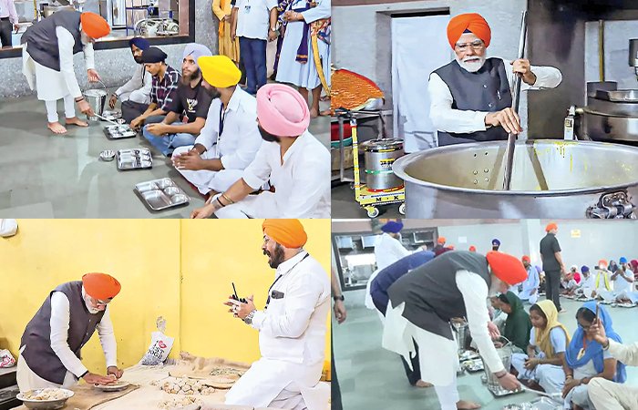 પીએમ મોદી હાલ પટના સાહિબ પહોંચ્યા છે. પીએમ મોદીએ ગુરુદ્વારામાં માથુ ટેકવ્યુ હતું. આ દરમિયાન પીએમ મોદીએ અસ્સલ શીખ લુકમાં જોવા મળ્યા હતા. ભગવા રંગની પાઘડીમાં સજ્જ થઇને પીએમ મોદી પટના સાહિબ ગુરુદ્વારા પહોંચ્યા હતા. પીએમ મોદી લંગરમાં સેવા આપતા પણ જોવા મળ્યા હતા. જેના દ્રશ્ર્યો સામે આવ્યા છે. પીએમ મોદીએ ભોજનશાળામાં રોટલી વણતા જોવા મળ્યા હતા. આ ઉપરાંત તેમણે લંગરને ભોજન પણ પીરસ્યુ હતું. મહત્વનું છે કે પીએમ મોદીની આજે બિહારમાં 3 જનસભા રેલી છે.