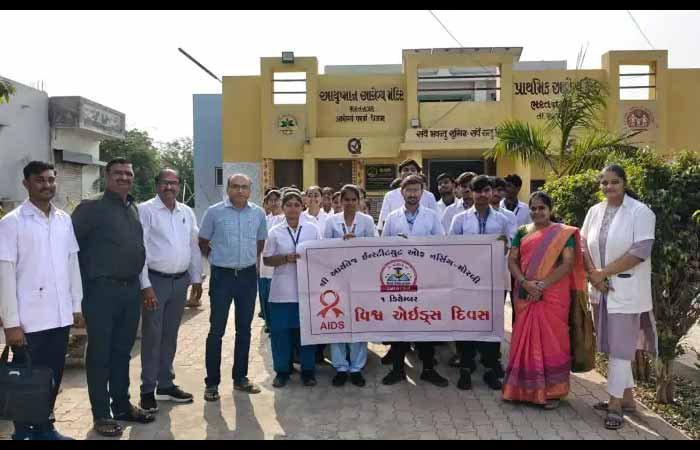 વિદ્યાર્થીઓએ ભરતનગર અને મોરબી સિટીમાં રેલી કાઢી; એઈડ્સ નિવારણ, જોખમી પરિબળો અને વેક્સિન વિશે લોકોને માર્ગદર્શન આપ્યું