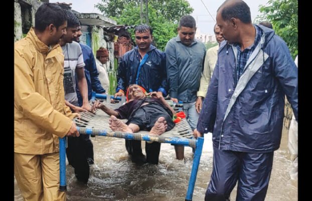 SP હર્ષદ મેહતા અને પોલીસ કર્મીઓ પાણીમાં ફસાયેલ લોકોની વ્હારે આવ્યા