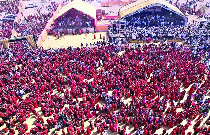 બાવળિયાળી ઠાકર ધામમાં સમાજના 75 હજાર બહેનોએ પરંપરાગત હુડો રાસ રમી સર્જયો વિક્રમ