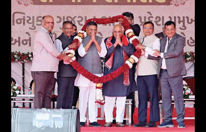 મુખ્યમંત્રી ભૂપેન્દ્ર પટેલની હાજરીમાં ભાજપના નવા પ્રમુખ જગદીશ વિશ્વકર્મા સહિત 4 લેઉવા પટેલ મંત્રીઓનું સન્માન; ખોડલધામ કેન્સર હોસ્પિટલ બનાવશે