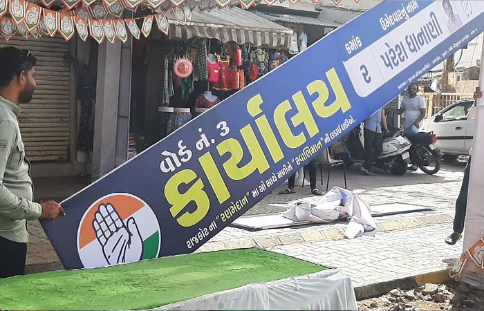 રાજકોટમાં ભાજપની ટોપી ઉતરાવાઇ, કૉંગ્રેસના બોર્ડ હટાવાયા