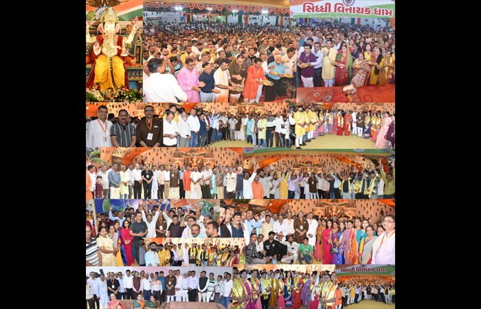 રાજકોટ શહેર ભાજપ આયોજિત શ્રી ગણપતિ મંગલ મહોત્સવ સમિતિ દ્વારા શહેરના કવિ શ્રી રમેશ પારેખ રંગદર્શન (ઓપન એર થિયેટર) સિદ્ધિ વિનાયક ધામ ખાતે ગણપતિ મહોત્સવનું ભવ્ય આયોજન કરવામાં આવ્યું છે. આ મહોત્સવના પાંચમા દિવસે બ્રહ્મ સમાજના તમામ તળગોળના ભાજપના આગેવાનો અને સમાજ અગ્રણીઓએ પરિવાર સાથે મોટી સંખ્યામાં ઉપસ્થિત રહી મહાઆરતીનો લાભ લઈ ધન્યતા અનુભવી હતી.
