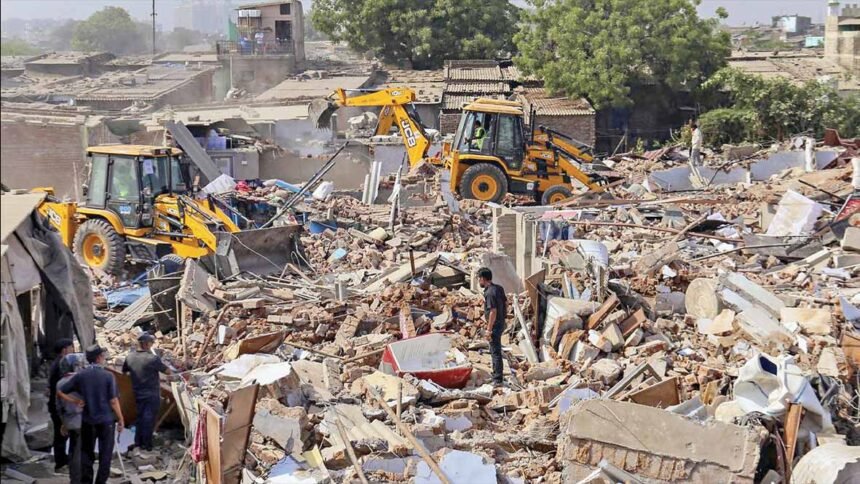 ગીર સોમનાથ જિલ્લાના પ્રભાસ પાટણ વિસ્તારમાં તંત્ર દ્વારા ચુસ્ત પોલીસ બંદોબસ્ત વચ્ચે કુલ 12 ગેરકાયદે દબાણો પર બુલડોઝર ફેરવવામાં આવ્યું હતું. આ દબાણોમાં એક ધાર્મિક દબાણ (દરગાહ), ત્રણ દુકાનો અને આઠ રહેણાંક મકાનોનો સમાવેશ થાય છે.